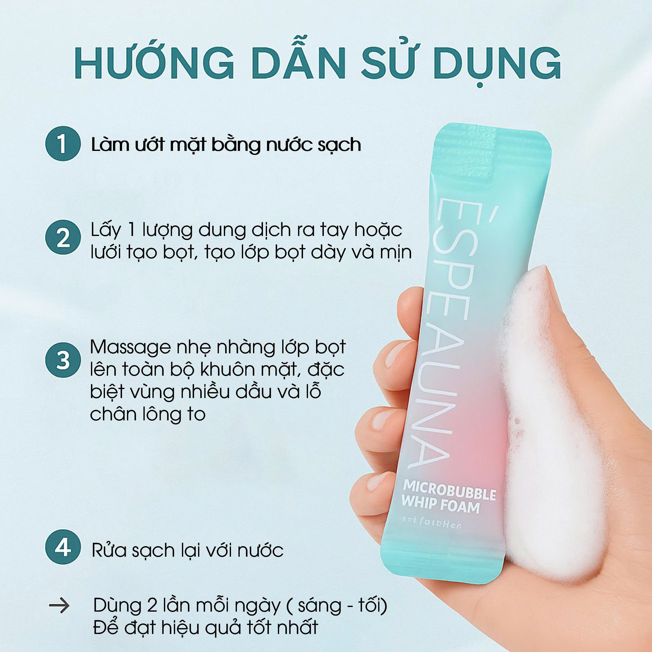 • Tạo bọt siêu mịn và dày đặc giúp làm sạch sâu lỗ chân lông