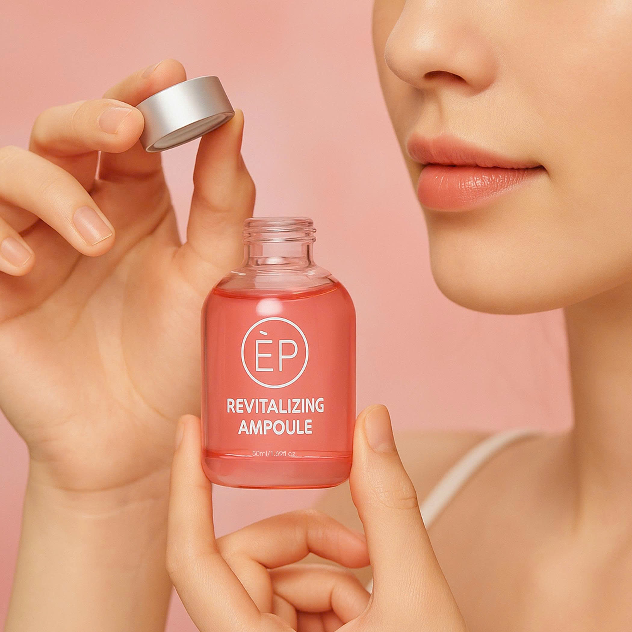 - Sau toner, lấy 2–3 giọt ampoule thoa đều toàn mặt